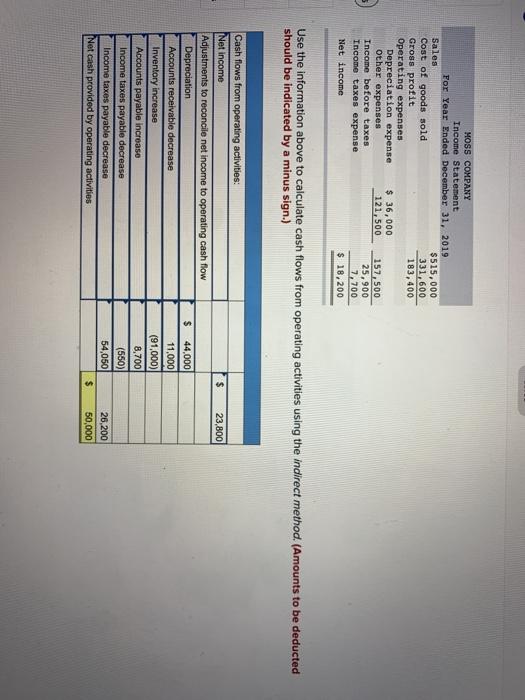 Solved Moss Company Income Statement For Year Ended December Chegg Com